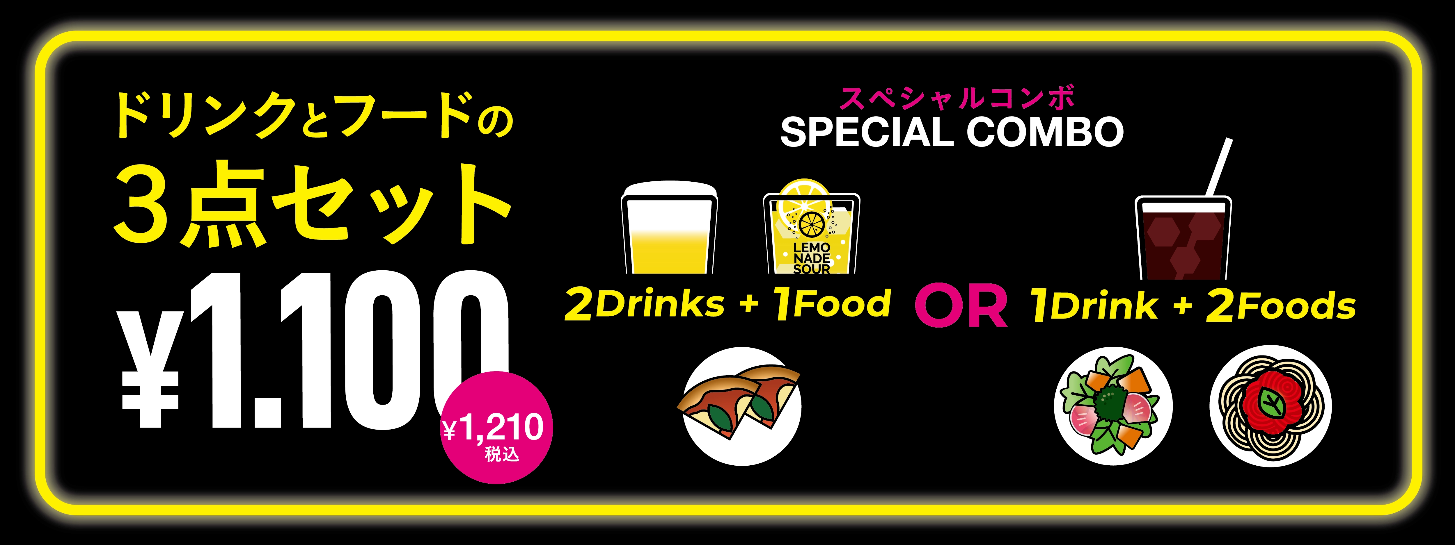 2ドリンク+1フード、または、1ドリンク+2フードの
