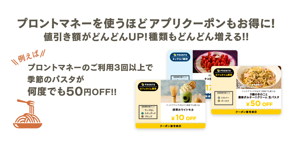 この機会に是非、プロントマネーカードを発行&チャージして、お得にプロントを楽しもう♪
