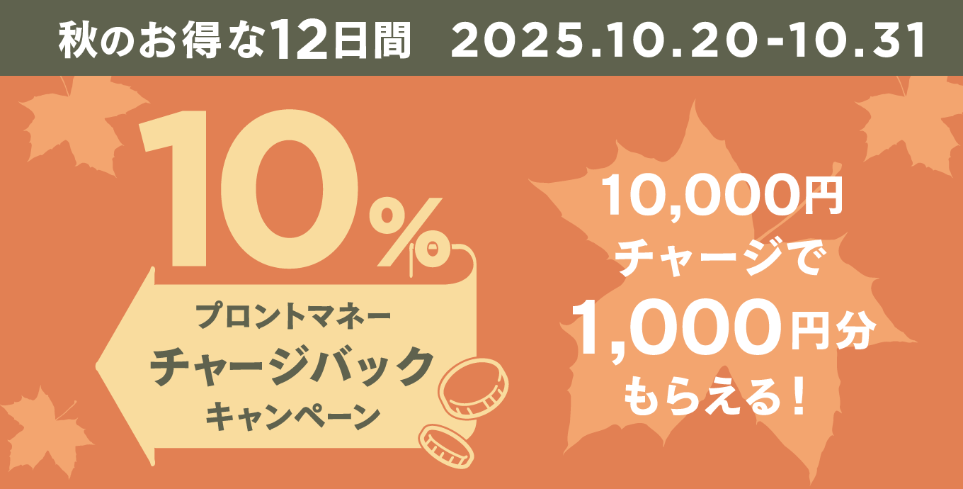\予告/【キャンペーン】秋のお得な12日間!プロントマネー10%チャージバックキャンペーン実施!2025年10月20日~10月31日
