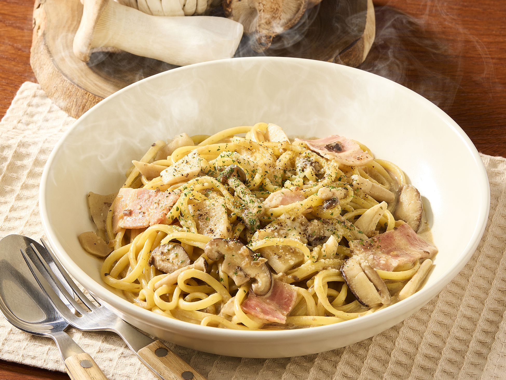 3種のきのこと濃厚ポルチーニクリーム 生パスタ