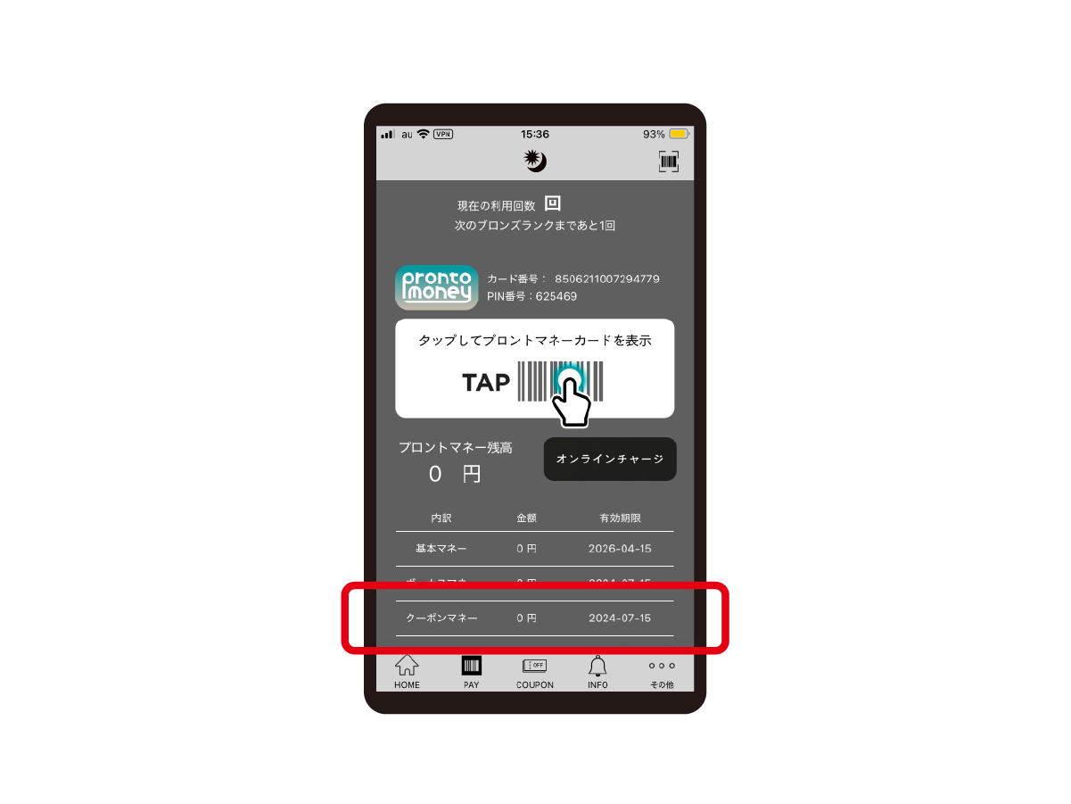 ・プロントマネーの受取確認は、PAYページの「利用履歴」からご確認ください。
